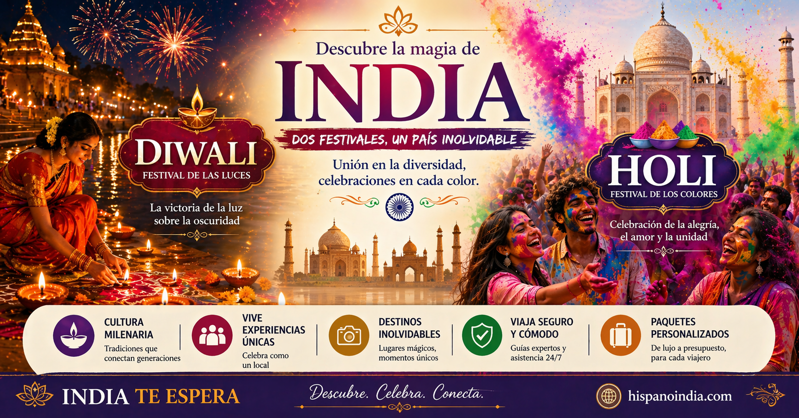 India es un país lleno de cultura, tradiciones y celebraciones únicas. Entre todas sus festividades, dos destacan por su belleza y popularidad: Diwali, el Festival de las Luces, y Holi, el Festival de los Colores. Estos eventos no solo son celebraciones religiosas, sino también experiencias culturales inolvidables que atraen a viajeros de todo el mundo....